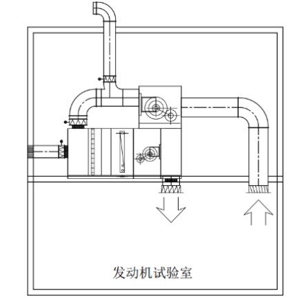 發動機在運轉過程中會產生大量的熱能,并通過發動機本體及排煙管將熱量傳遞到室內,在短時間內聚集大量的熱能使得試驗室溫度迅速上升,這不僅會影響試驗室內消防系統的正常工作,更會對PUMA系統及進氣空調系統的測量元件產生嚴重的影響,極大的影響了測試工作。需要一套專業的全室空調系統來解決這個問題。